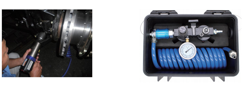 一臺氣動扭矩扳手的標準配置有:一支反作用力臂,一件固定反作用力臂與扳手連接的卡環(huán),一根氣管,一塊壓力表,一只過濾器、調(diào)節(jié)器、注油器三聯(lián)套工具提籃。