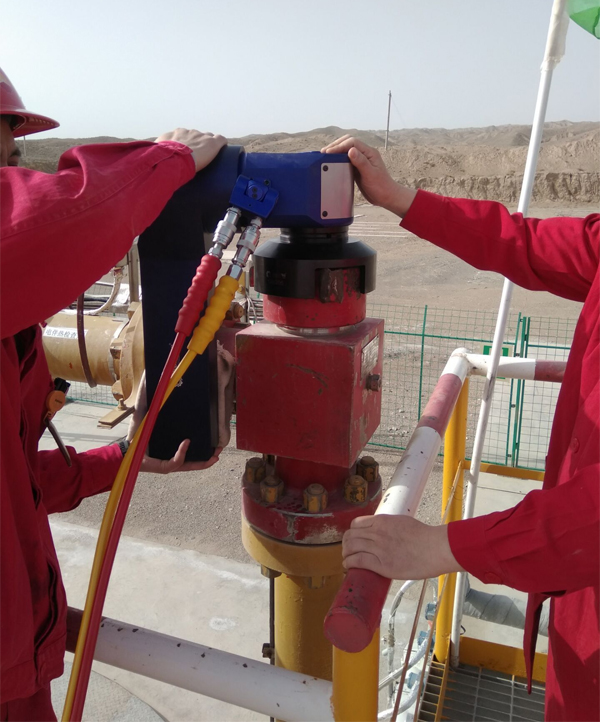 經(jīng)過我們該區(qū)域的現(xiàn)場銷售工程師勘察測量做出解決方案,BOLTING(博霆)為之專門定制的天然氣單井固定式節(jié)流閥專用液壓扭矩扳手解決了困擾他們難題,得到了用戶的認(rèn)可,施工現(xiàn)場如下: