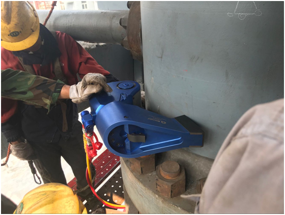 現(xiàn)場(chǎng)的螺栓工況比較狹隘,所定制的薄壁套筒一次吻合,使用液壓扳手一次性到位,管道試壓無泄露,為客戶節(jié)省了相當(dāng)寶貴的施工時(shí)間。